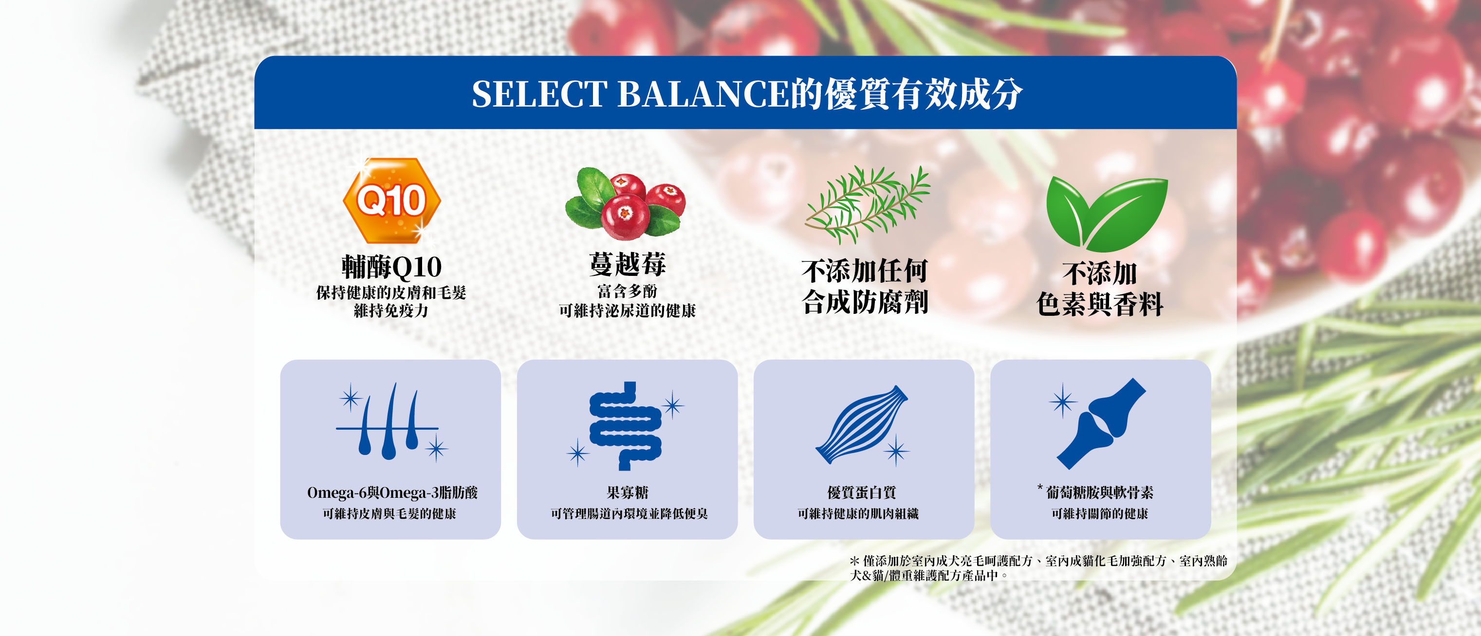 讓您的寶貝每天健康又愉快——立即選擇 SELECT BALANCE,給牠最安心的呵護!現在購買 1.6 kg 包裝,隨時補貨更方便!